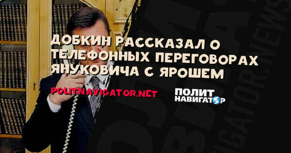 Потом сказал, чтобы его соединили с главой Службы безопасности Якименко. Янукович сказал, чтобы Якименко соединил его с Ярошем. Он разговаривал с Дмитрием Ярошем, говорил о каких-то их договоренностях, о том, что Межигорье не будут штурмовать. Прошло полчаса и выяснилось что люди до Межигорья так и не дошли», – сказал Добкин.