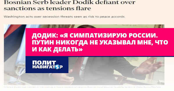 «Я симпатизирую России, которая считает, что ее безопасность неприкосновенна, и что она должна защищать свою безопасность. Путин никогда не говорил мне, что я должен делать то-то и то-то, и всегда соблюдал Дейтонское соглашение», – отметил Додик.