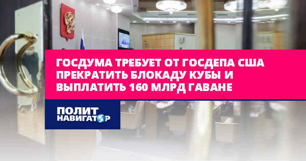 Госдума требует от Госдепа США прекратить блокаду Кубы и выплатить 160 млрд Гаване