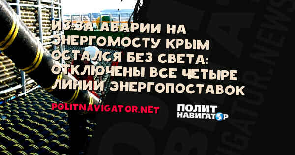 “По предварительным данным, все четыре ветки энергомоста в Крыму отключены по причине аварии… Данное событие- хороший способ посмотреть готовность муниципалитетов к ЧС, как быстро соцобъекты подключили к резервному питанию, подключили ли, а кто вообще опять все просаботировал”.