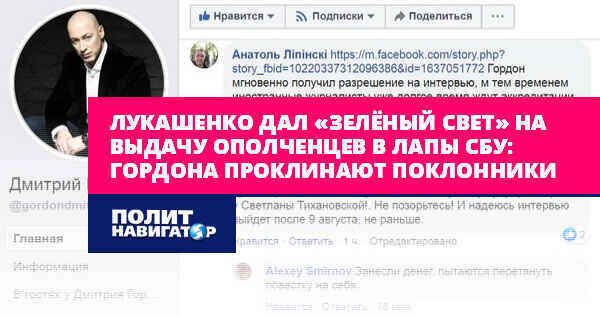 Лукашенко дал «зелёный свет» на выдачу ополченцев в лапы СБУ: Гордона проклинают поклонники