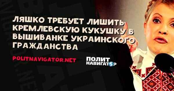 Лидер Радикальной партии Олег Ляшко требует лишить лидера “Батьківщини” Юлию Тимошенко украинского гражданства и выслать в Россию.