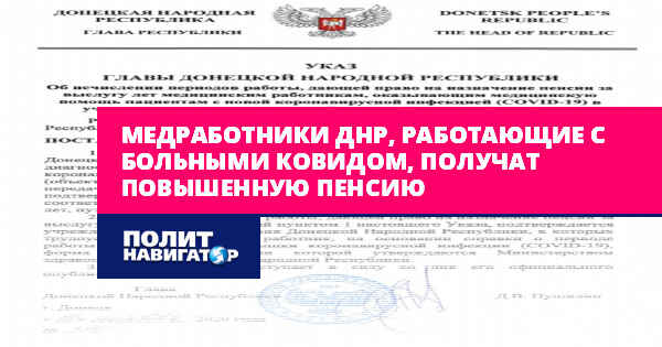 Глава ДНР Денис Пушилин подписал указ № 396, согласно которому стаж для пенсии за выслугу лет медицинским работникам, имеющим дело с зараженными коронавирусной инфекцией, будет начисляться по системе «день за два».