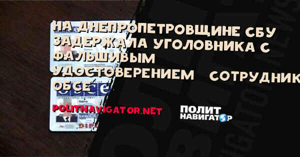 Сотрудники Службы безопасности Украины в Днепропетровской области разоблачили человека из криминальной среды, который прикрывался поддельным удостоверением инспектора международной миссии по безопасности ОБСЕ, передает корреспондент “ПолитНавигатора” со ссылкой на пресс-центр СБУ.