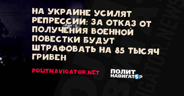 На Украине усилят репрессии: за отказ от получения военной повестки будут штрафовать на 85 тысяч гривен