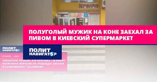 Полуголый мужик на коне заехал за пивом в киевский супермаркет