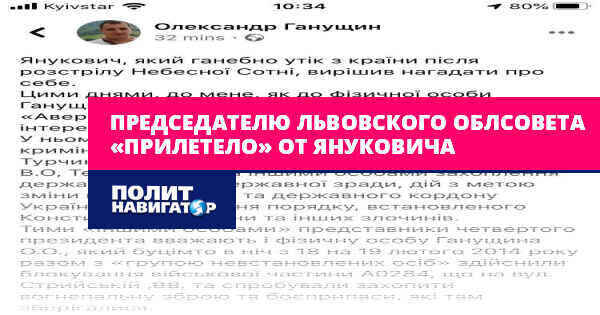 «Янукович, который позорно бежал из страны после расстрела Небесной Сотни, решил напомнить о себе. На днях ко мне, как к физическому лицу Ганущину А.А., поступил запрос от адвоката АО «Авер ЛЕКС» Биленко Б.В., который выступает в интересах В.Ф. Януковича.