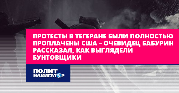 English version :: Читать на английском Протесты в Тегеране были полностью проплачены США – очевидец Бабурин рассказал, как выглядели бунтовщики