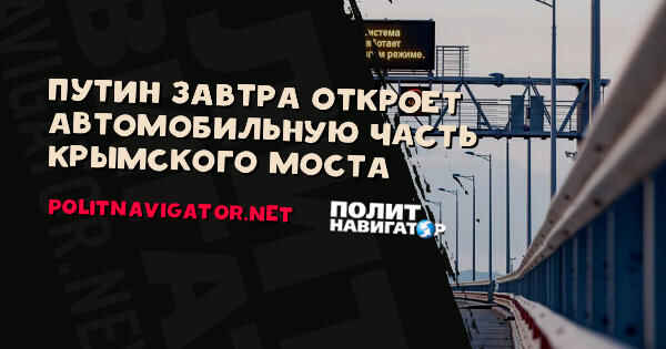 Президент Российской Федерации Владимир Путин завтра примет участие в открытии движения по автомобильной части Крымского моста.