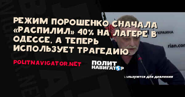 Режим Порошенко сначала «распилил» 40% на лагере в Одессе, а теперь использует трагедию