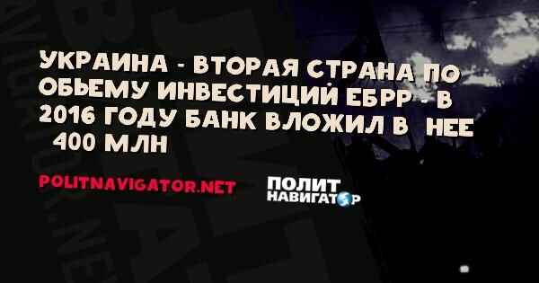 Украина – вторая страна по обьему инвестиций ЕБРР – в 2016 году банк вложил в нее €400 млн