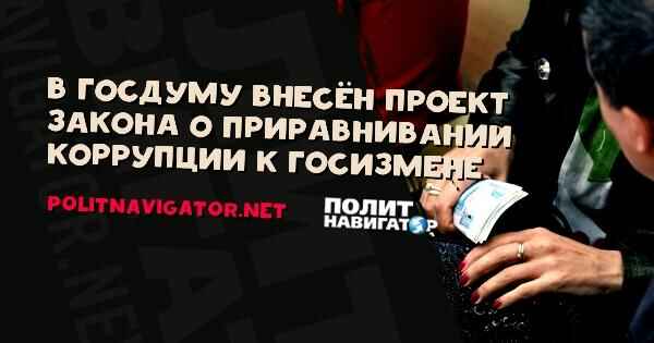 В Госдуму внесён проект закона о приравнивании коррупции к госизмене