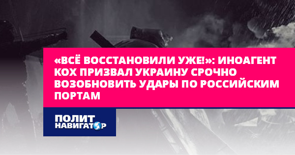 «Всё восстановили уже!»: иноагент Кох призвал Украину срочно возобновить удары по российским портам