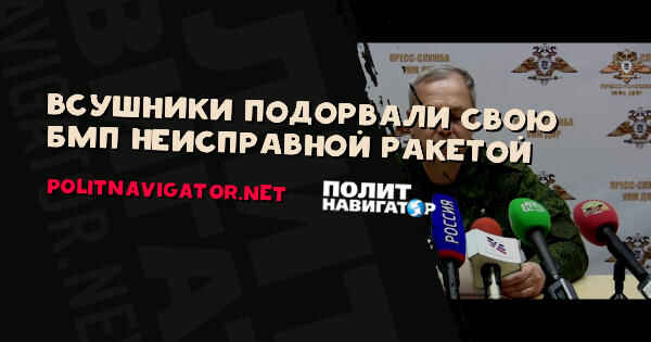 По его словам, 25 марта, в связи с неисправностью противотанковой управляемой ракеты, украинские военнослужащие не придумали ничего лучшего, как закопать боеприпас на территории собственных позиций. После наезда БМП, ракета сдетонировала и произошел подрыв машины с экипажем.