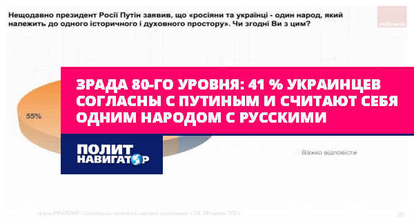 Зрада 80-го уровня: 41 % украинцев согласны с Путиным и считают себя одним народом с русскими