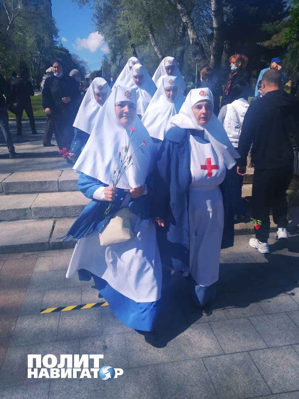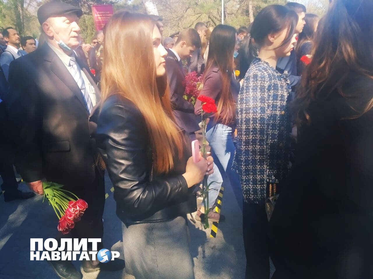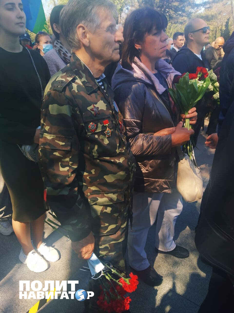 К памятнику неизвестному Матросу я подошла в девять утра, а он уже был покрыт цветами. У Вечного огня — ветераны и низко кланяющиеся им люди. Но полицейские попросили нас расступиться — двигалась официальная делегация: мэр, губернатор, чиновники. Специально для них даже реквием включили: «Люди! Покуда сердца стучатся, — помните! Какою ценой завоевано счастье!». Простому люду слушать его не дозволено, видимо, потому, что в случае массового прослушивания — это уже пропаганда советских символов, за которую всех, кто не мэр, пинают ногами.