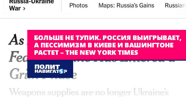 «Американские военные и разведывательные чиновники пришли к выводу, что война в Украине больше не является тупиком, поскольку Россия неуклонно выигрывает, а чувство пессимизма в Киеве и Вашингтоне углубляется» , – подчеркивают в издании.