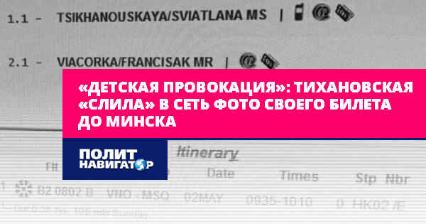 «Детская провокация»: Тихановская «слила» в Сеть фото своего билета до Минска
