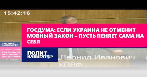 «На Украине вступил в силу еще один людоедский закон, который не позволяет получать не только обучение, но даже рекламу на русском языке. Введен запрет на все русскоязычные научные публикации, защиту диссертаций. Все диагнозы, рецепты, назначения. С начала учебного года все русскоязычные школы уже перешли на обучение на украинском языке. Наконец, с 16 января на предприятиях всех форм собственности запрещено обслуживание потребителей на русском языке», – сказал представлявший текст заявления депутат Леонид Калашников.