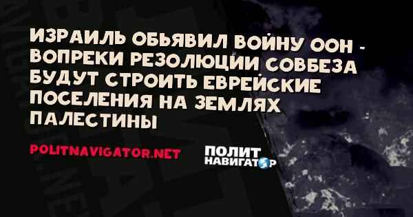 Израиль проигнорировал резолюцию ООН о запрете строительства поселений на территории Палестины, и принял решение начать строительство еврейских поселений на палестинской территории.