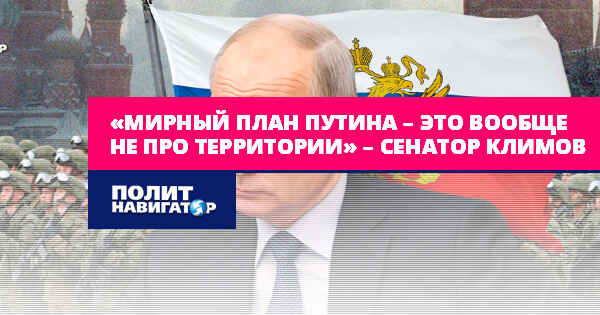 «Мирный план Путина – это вообще не про территории» – сенатор Климов