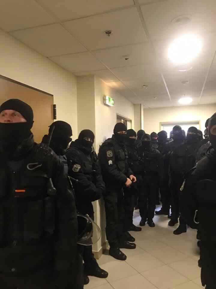 Активист УНА-УНСО Назар Приходько в своем телеграм-канале также сообщает о штурме зала суда нацгвардейцами.