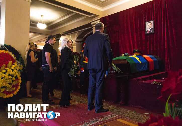 Наталья Поклонская зашла в театр оперы и балета вслед за Аксёновым. Она положила цветы к постаменту Главы ДНР, после чего долго беседовала с женой Захарченко, успокаивала её и несколько раз обняла.