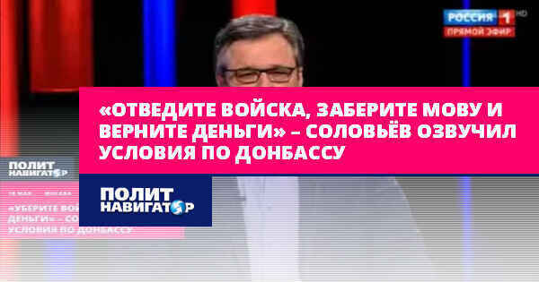 «Отведите войска, заберите мову и верните деньги» – Соловьёв озвучил условия по Донбассу
