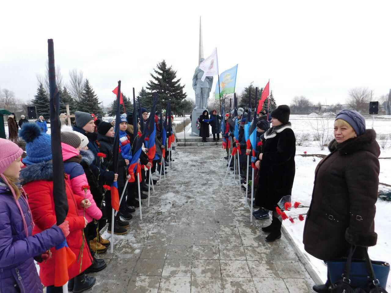 У памятника Неизвестному солдату в Амвросиевке, установленному пять лет назад, собрались местные жители и гости города.