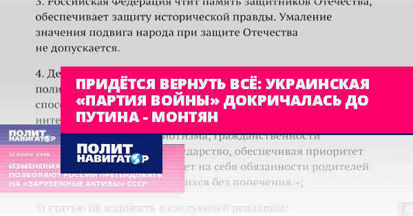 Придётся вернуть всё: украинская «партия войны» докричалась до Путина – Монтян