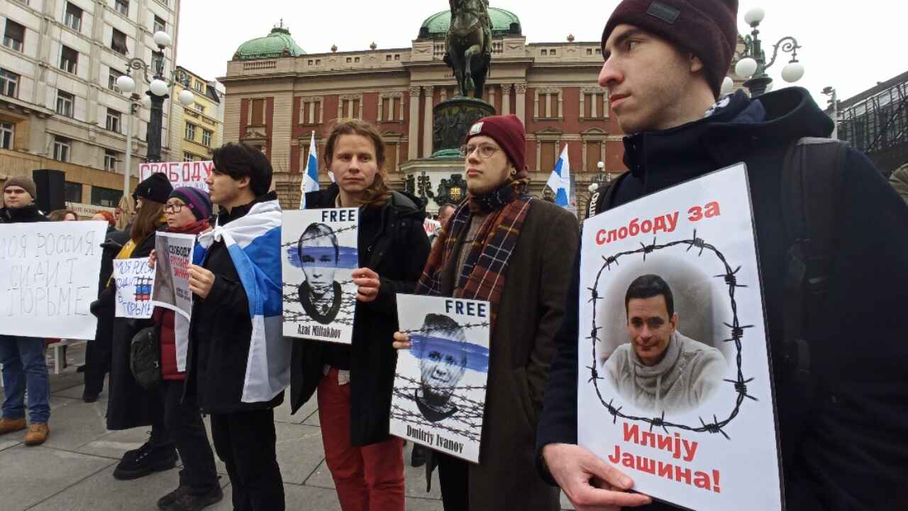 Акция российских либералов в Белграде прошла под бело-сине-белыми флагами и лозунгами «Россия – это мы», «Моя Россия сидит в тюрьме», «Россия будет свободной». Примечательно, что на мероприятии не было привычных для предыдущих акций украинских флагов.