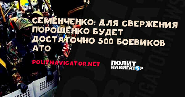 Пятисот опытных ветеранов т.н. АТО будет достаточно для устранения от власти Петра Порошенко, заявил депутат Верховной Рады Семен Семенченко, экс-командир нацбата «Донбасс».