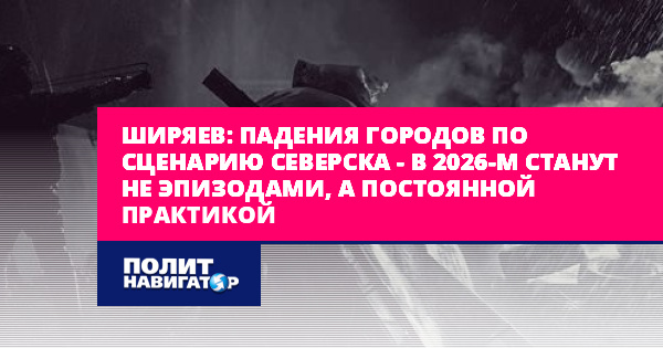 Ширяев: Падения городов по сценарию Северска – в 2026-м станут не эпизодами, а постоянной практикой