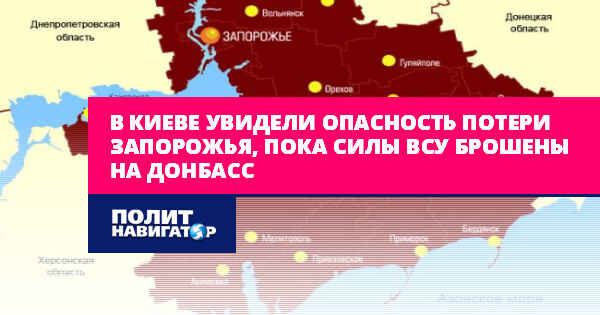В Киеве увидели опасность потери Запорожья, пока силы ВСУ брошены на Донбасс