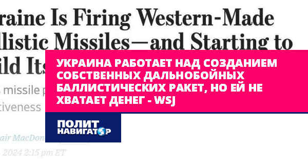 Американское издание WSJ утверждает, что Украина работает над созданием собственных баллистических ракет, которые смогут наносить удары вглубь России, чтобы меньше зависеть в этом отношении от изменчивой политической коньюнктуры на Западе.