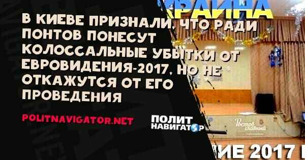 В Киеве признали, что ради понтов понесут колоссальные убытки от Евровидения-2017, но не откажутся от его проведения