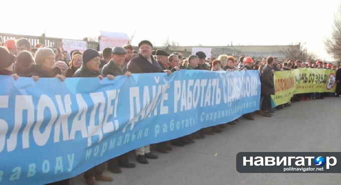 Одесса, Декабрь 14 (ПолитНавигатор, Михаил Рябов) – В воскресенье около 600 работников Одесского припортового завода и членов их семей вышли на митинг против захвата предприятия группой «Приват» олигарха Игоря Коломойскго, а также с требованием прекратить экономическую блокаду Донбасса.