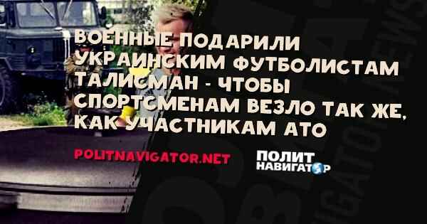 Украинские военные подарили талисманы национальной сборной Украины по футболу, чтобы футболистам так же везло в спорте, как и участникам “АТО” на Донбассе.