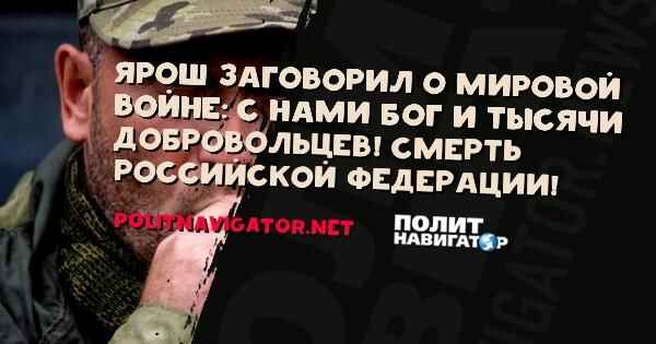Ярош заговорил о мировой войне: “С нами Бог и тысячи добровольцев! Смерть Российской Федерации!”