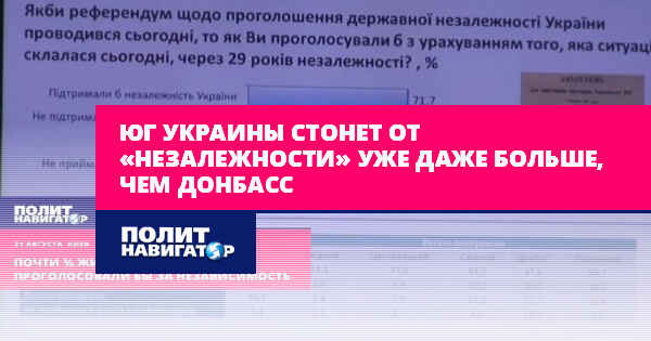 Жители юга Украины настроены в отношении «независимости» Украины даже более скептически, нежели граждане в подконтрольной Киеву части Донбасса. Впрочем, такие парадоксальные результаты социологического исследования можно объяснить и более высоким уровнем опасения репрессий рядом с зоной боевых действий.