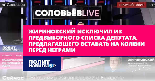 «Мы ему уже высказали наше отрицательное отношение. Скорее всего, он не пойдет на выборы по нашим спискам. Вот ищет нового хозяина. Кто бы его заприметил и поддержал. Тот же Навальный, глядишь, в каком-нибудь округе через «Умное голосование». Или на Западе скажут: смотри, какой. Это продажность», – сказал Жириновский.